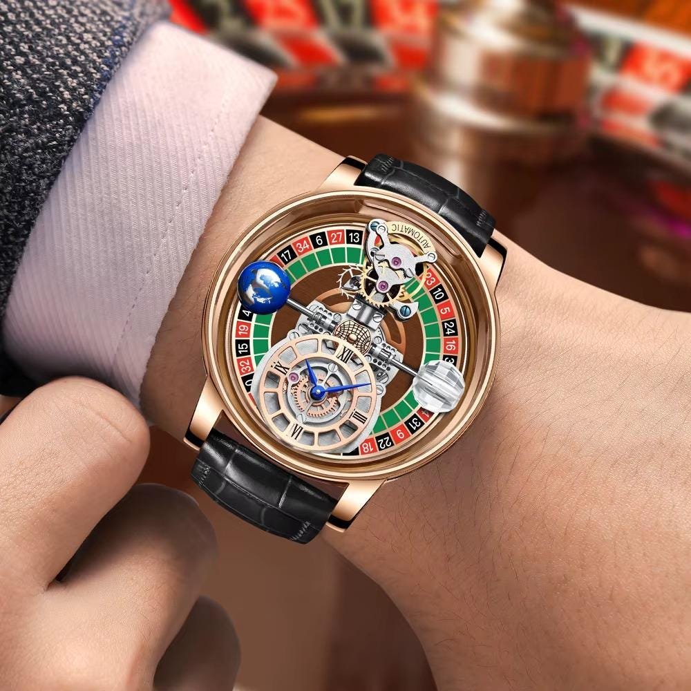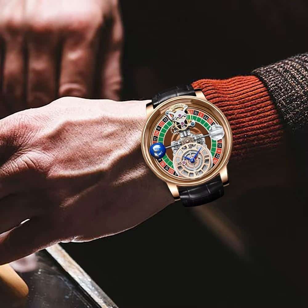 luxury men’s watch, celestial roulette watch, curved globe dial watch, quartz wristwatch for men, roman numeral watch, men’s fashion watch, water resistant watch, leather strap men’s watch, stainless steel men’s watch, shock resistant wristwatch, antique style watch, big dial watch for men, business casual men’s watch, designer inspired watch, unique men’s timepiece